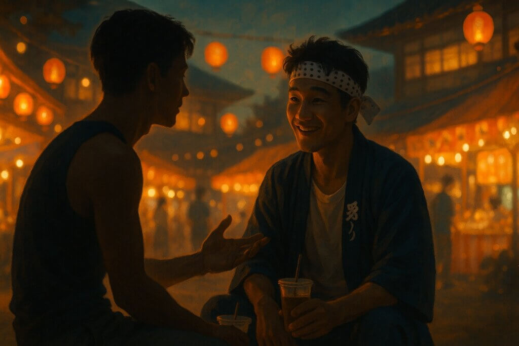 今日は、コクボ君と2人で三沢のお祭り会場でおしゃべりしながら歩いた。